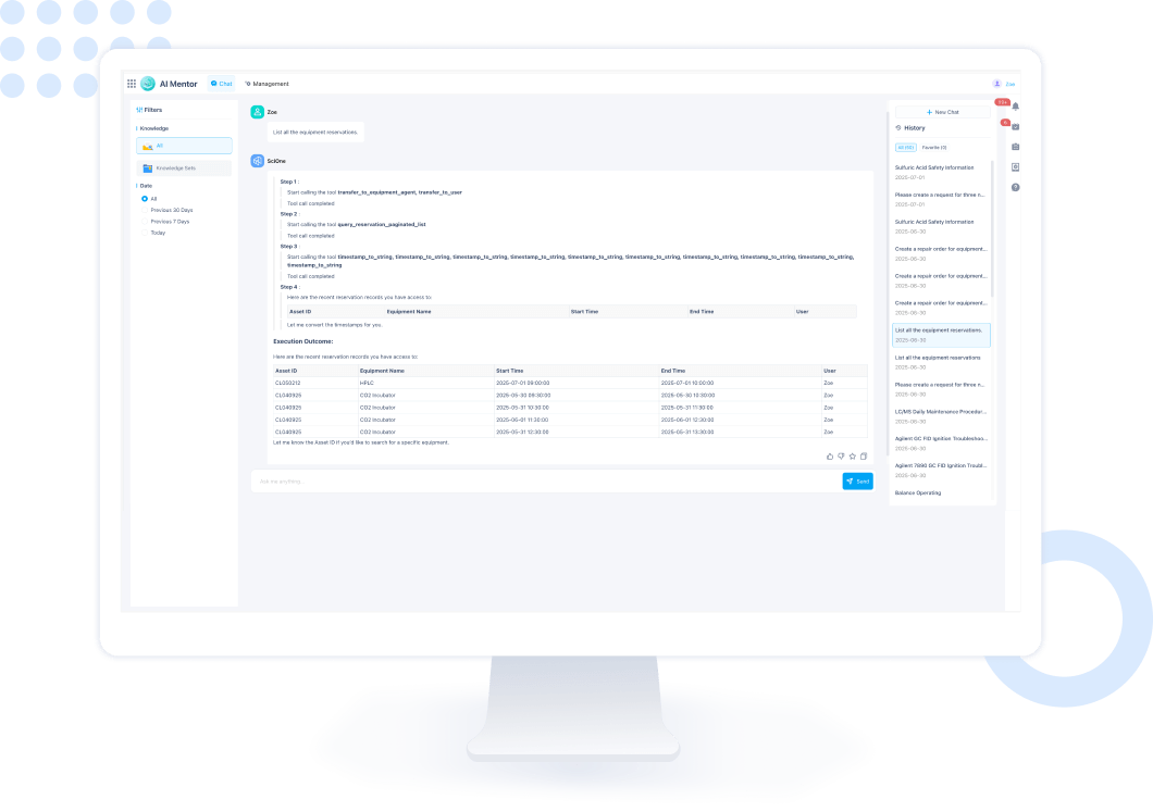 Instantly retrieves protocols, knowledge, and past records